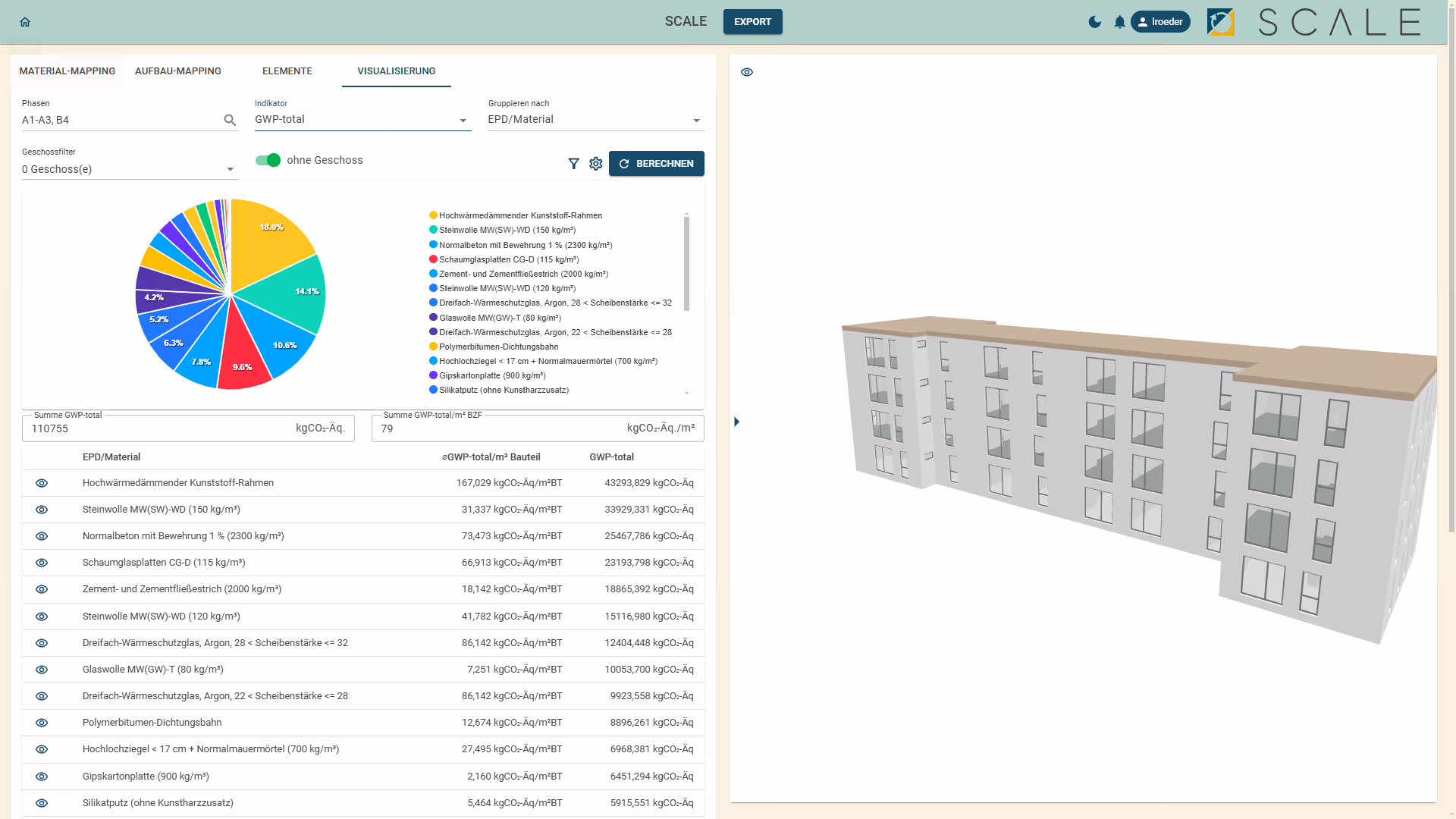 Durch die Integration von unterschiedlichen Datenbanken mit Material- und Energiekennwerten (z.B. Ökobaudat) finden die verschiedenen (Länder-) Vorgaben ohne Aufwand Berücksichtigung. Benutzerfreundlichkeit und Flexibilität muss dabei ganz oben auf der Liste der Anforderungen stehen, zum Beispiel durch intuitive Benutzeroberflächen, die eine Interpretation und das Ergänzen von Informationen erleichtern. Weiters müssen Ergebnisse gut kommunizierbar und vergleichbar darstellbar sein. Dies fördert die Akzeptanz und Anwendung der Ökobilanzierung in der Bau- und Immobilienbranche. Besonders effizient ist die Durchführung von Ökobilanzierungen, wenn Building Information Modeling (BIM) in einem Projekt angewendet wird. Die dadurch mögliche strukturierte Datengrundlage umfasst detaillierte Angaben zu Materialien, Konstruktionen und Prozessen, und reduziert den Aufwand einer Ökobilanzierung erheblich. Mit geeigneten Tools wie SCALE können bereits rudimentäre BIM-Modelle als Basis verwendet und etablierte Firmenstandards weiter genutzt werden.