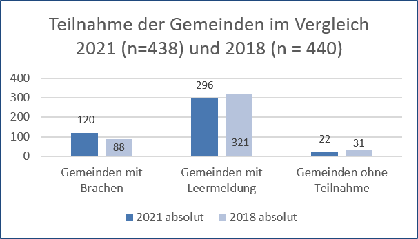 Flächeninanspruchnahme und Zersiedelung gehören zu den drängendsten Problemen der Gegenwart. Für den Flächenschutz in Oberösterreich setzt das Land mit der neuen OÖ. Raumordnungsstrategie und dem neuen OÖ. Raumordnungsgesetz Impulse zur Orts- und Stadtkernbelebung und zur Revitalisierung von Leerstand und Brachflächen. In der Raumordnungsstrategie #upperREGION2030 haben wir festgelegt, die Entwicklung nach innen anstatt nach außen durch die Aktivierung von Baulandreserven, Leerständen und Brachflächen zu fördern. Um jedoch Leerstände und Brachen aktivieren zu können, müssen diese zunächst identifiziert werden. Die Industrie- und Gewerbebrachenerhebung 2021, die gemeinsam mit der FH Oberösterreich durchgeführt wurde, verschafft einen nahezu flächendeckenden Überblick, da mehr als 95 % aller Gemeinden in Oberösterreich an der Befragung teilgenommen haben. Gesucht wurden Immobilien, die seit mindestens drei Jahren leer stehen oder bei denen zum Zeitpunkt der Befragung nur maximal ein Drittel ihrer Objektnutzfläche gewerblich genutzt wurde. Insgesamt haben 120 Gemeinden eine Brache gemeldet, 296 Gemeinden verfügen gemäß der Definition über keine Brachen. 22 Gemeinden haben an der Befragung nicht teilgenommen.