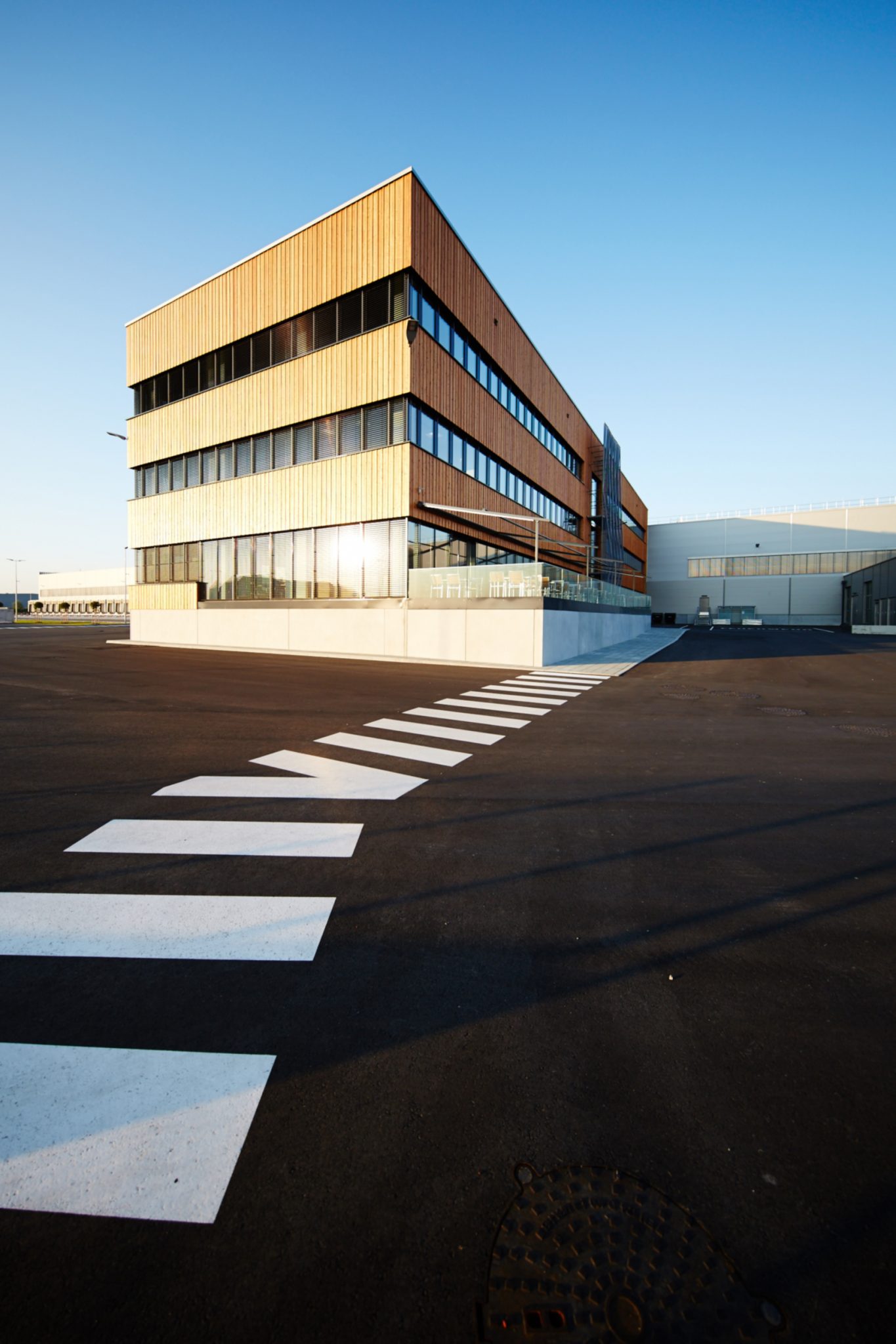 Das Logistikzentrum besteht aus einem Hallenteil mit 208 x 124 m, einem Bauteil mit Technikräumen und Verwaltung sowie einem Pförtnerhäuschen. Das hochtechnisierte Logistikgebäude entspricht den modernsten Umweltstandards, setzt natürliche Kältemittel ein und vermeidet so den Einsatz fluorierter Treibhausgase. Besonderes Augenmerkt wurde auch auf die Wassereffizienz des Gebäudes gelegt. Energiesparende Beleuchtung wird aus der eigenen PV-Anlage gespeist.