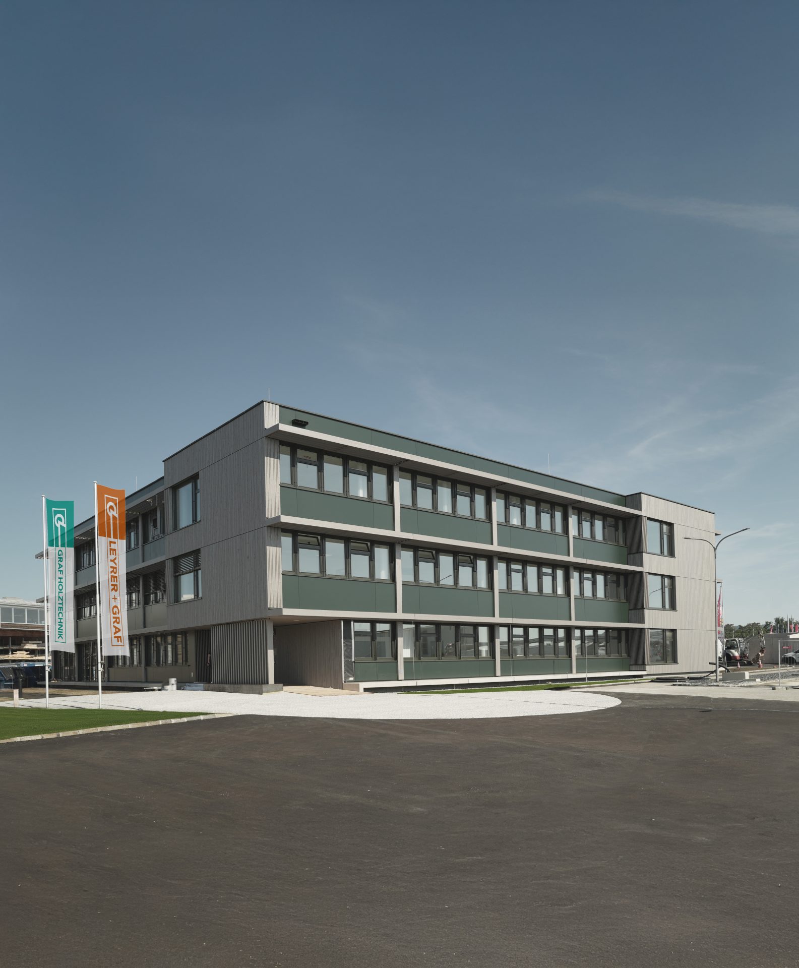 Die Graf-Holztechnik, das auf Holzbau spezialisierte Tochterunternehmen von Leyrer + Graf, ist seit 1995 am Firmensitz in Horn ansässig. Im Laufe der Jahre hat sich das Unternehmen kontinuierlich weiterentwickelt und ist stets gewachsen. Diese dynamische Expansion sowie die sich wandelnden Anforderungen an zeitgemäße Arbeitsbedingungen waren die Beweggründe, ausreichend neuen Raum für zukünftiges Wachstum zu schaffen und in einen Büroneubau zu investieren.