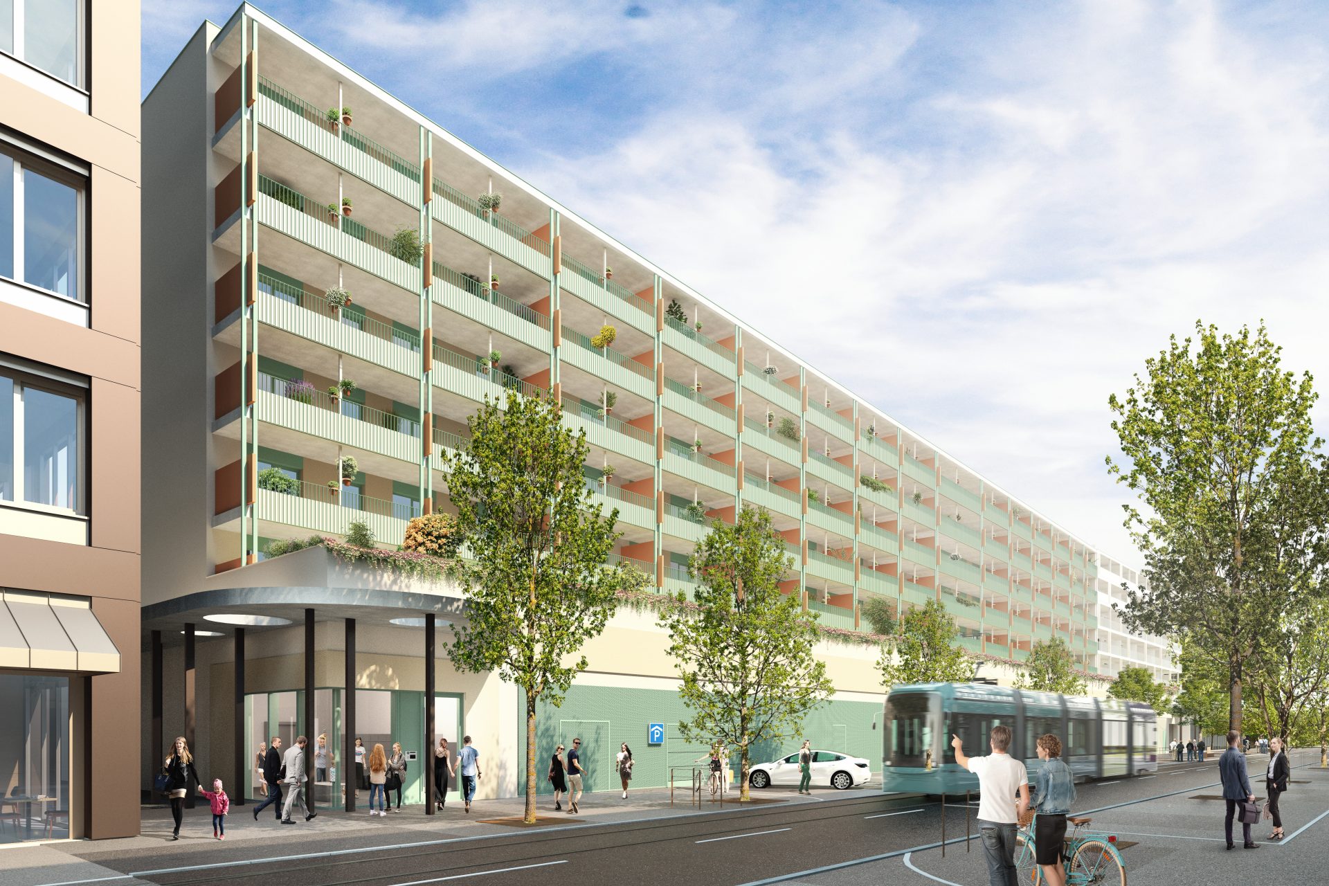 Im Erdgeschoss befinden sich dzt. zwei geplante Geschäftsflächen, ein Gemeinschaftsraum, die Zugänge zu den Stiegenhäusern, Müll- und Technikräume, 173 Fahrradabstellplätze, sowie die Zufahrten zur Parkgarage für 135 PKW Stellplätze. Durch die Parkgarage im Baukörper Stick verläuft auch die Zufahrt zur Parkgarage des benachbarten Baukörpers Tower. Im 1.- 6. Obergeschoss befinden sich 78 mit Laubengängen erschlossene Wohnungen mit jeweils einer zugeordneten, vom Laubengang begehbaren Abstellbox (Größe ca. 4 m² bzw. ca. 8 m² – Zuteilung abhängig von Wohnungsgröße). Die nach Westen ausgerichteten Balkone sind vom 2. OG bis 6. OG situiert und verlaufen über die gesamte Breite der Westfassade. Unter den Balkonen befinden sich im 1. OG Terrassen mit vorgelagerten Eigengärten.