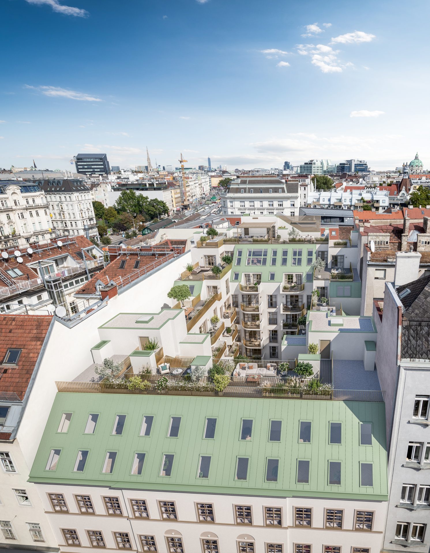 Direkt am Naschmarkt vereint dieses Revitalisierungsprojekt eindrucksvoll unterschiedliche Einflüsse und bündelt das Beste aus mehreren Epochen. Edle Materialien hauchen den exklusiven Eigentumswohnunen außergewöhnlichen Luxus ein. Mit der ressourcenschonenden Revitalisierung und der DGNB-Zertifizierung investiert WINEGG in eine langfristige Wertsteigerung.
