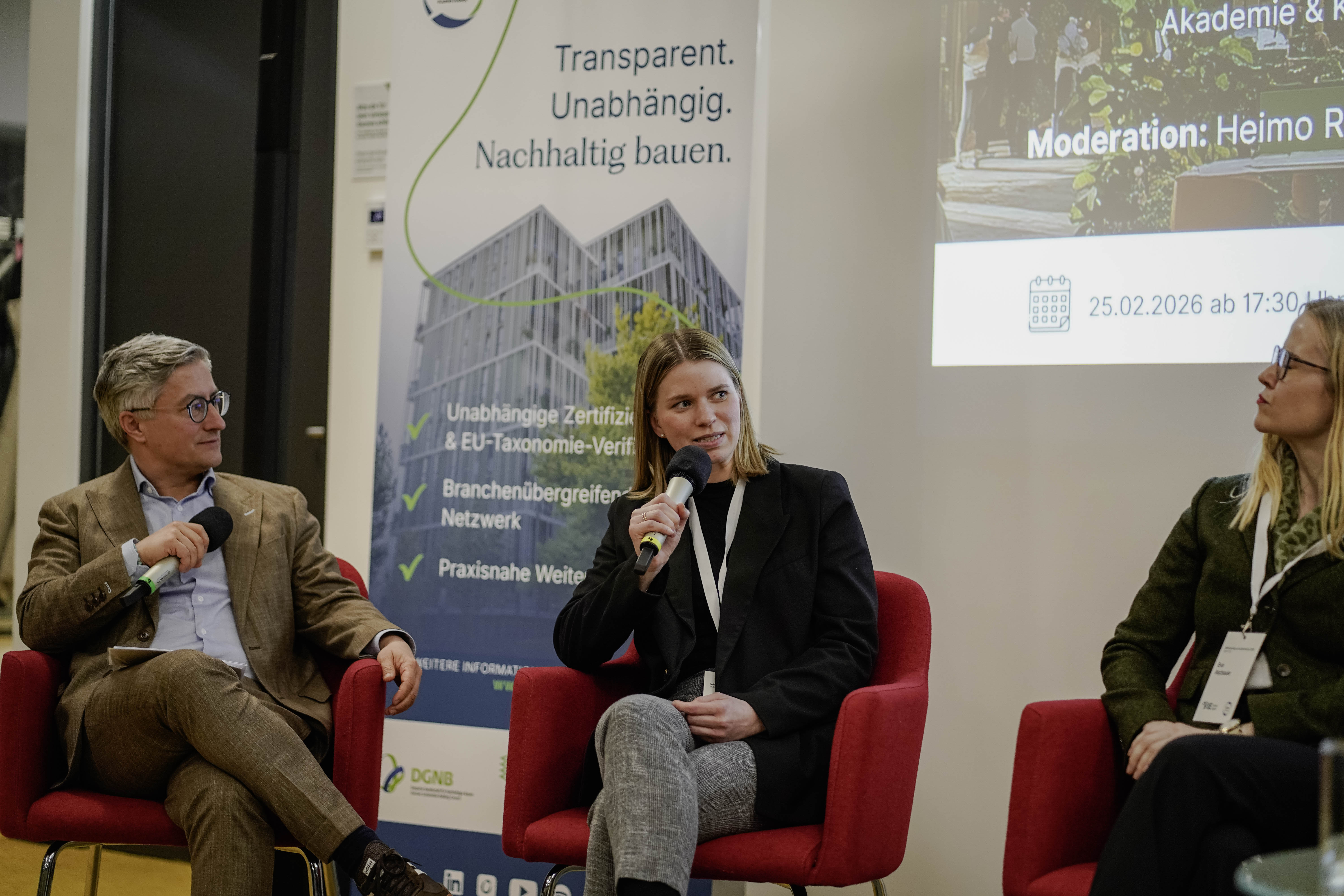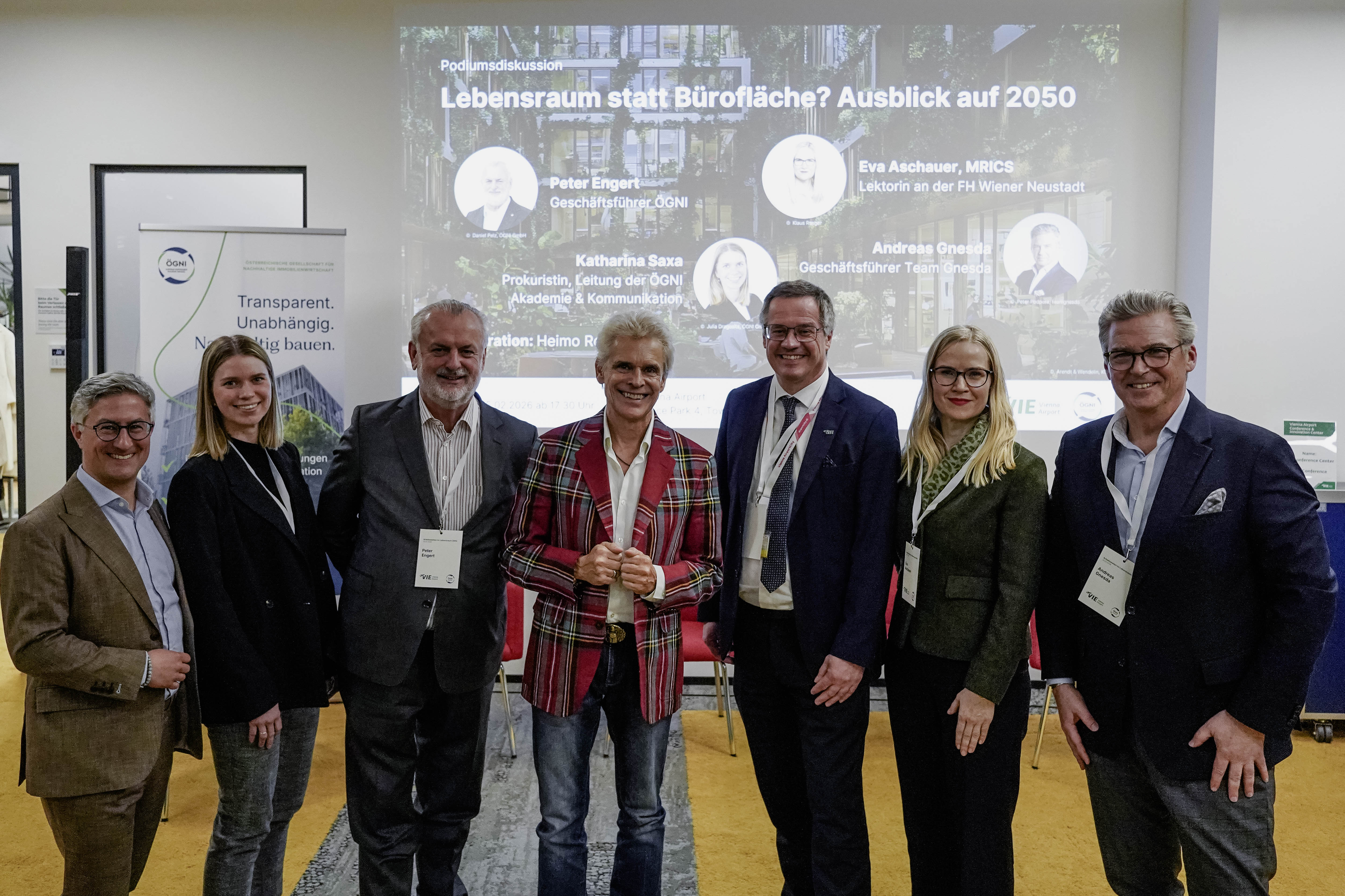 Den Abschluss bildete die Podiumsdiskussion mit Mitgliedern der ÖGNI Arbeitsgruppe zum selben Thema, Eva Aschauer, MRICS, Andreas Gnesda, Katharina Saxa und Peter Engert unter der Moderation von Heimo Rollett. Das gemeinsame Fazit: Gebäude der Zukunft sind keine statischen Hüllen mehr, sondern dynamische, flexible Organismen, welche konsequent nutzerzentriert geplant werden müssen – “Lebensraum” statt “Bürofläche”. Anschließend wurden die Gespräche beim gemeinsamen Networking fortgeführt.